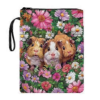 Couverture de livre à motif de fleurs et de cochons d'Inde, organiseur de livres, étui imperméable en polyester lavable, idéal pour le bureau et le transport des livres.