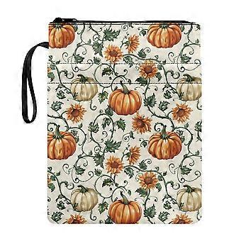Étui de protection pour livres à motifs tournesol et citrouille, imperméable et facile à transporter, en polyester avec fermeture éclair et poignée.