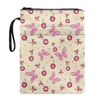 Housse de livre en polyester à motif papillons et cerises, avec pochette de protection imperméable.