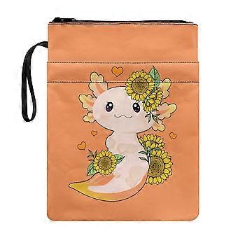 Couverture de livre souple en polyester pour lecteur, cadeau pour club de lecture, motif décoratif axolotl et tournesols, idéale pour un cahier ou un club de lecture.