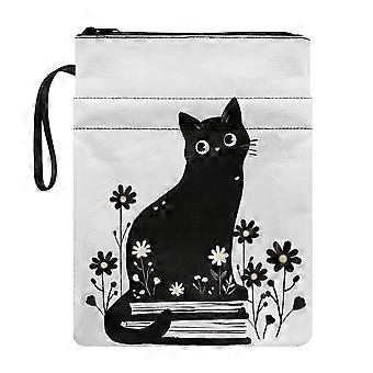 Pochette de protection pour livres Black Cat Garden, lavable et en polyester, avec poche intégrée.