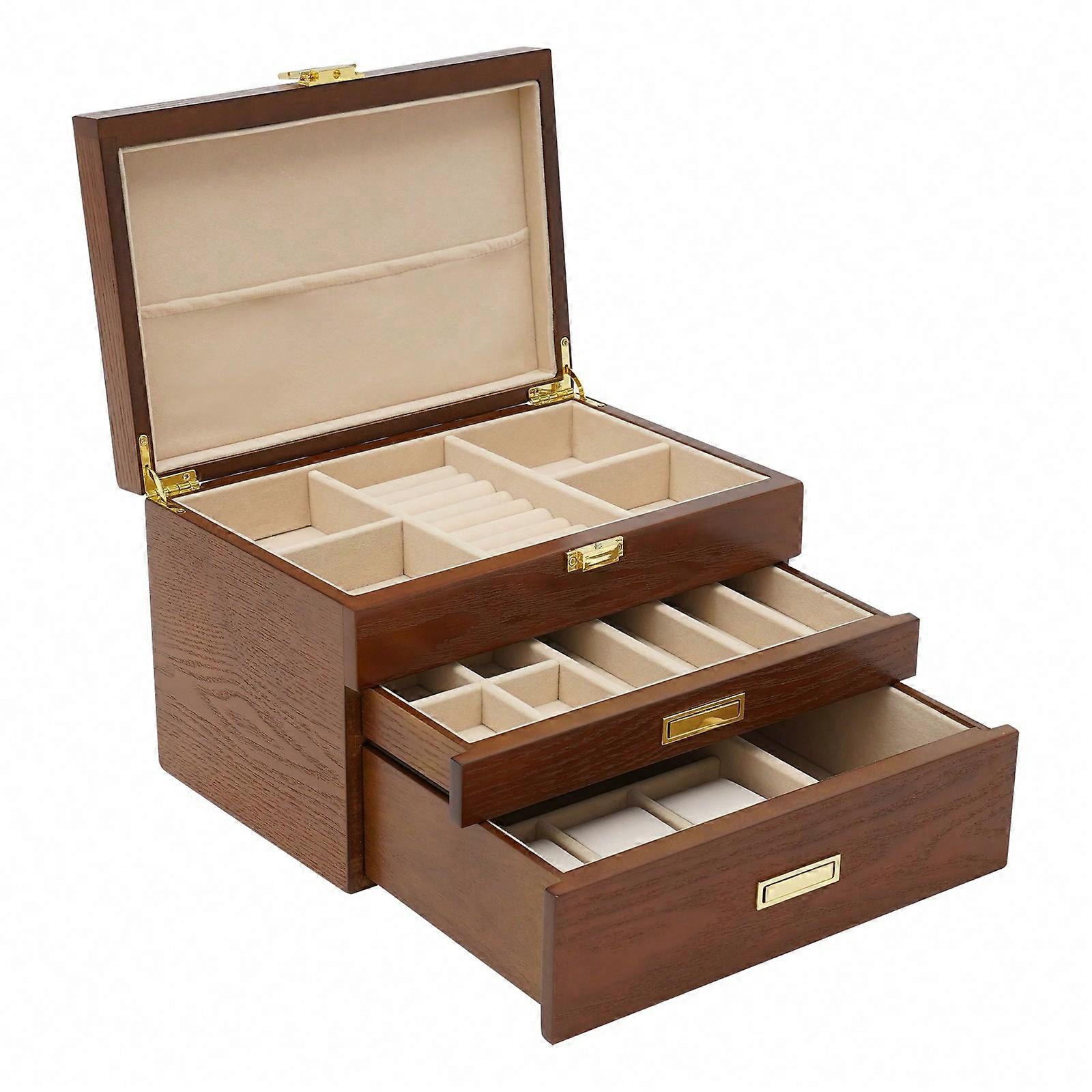 Wooden Jewelry Box For Women, Jewelry Organizer Box, Jewelry Boxes For Storage Earrings Rings Necklace Bracelet, (3 Layer )