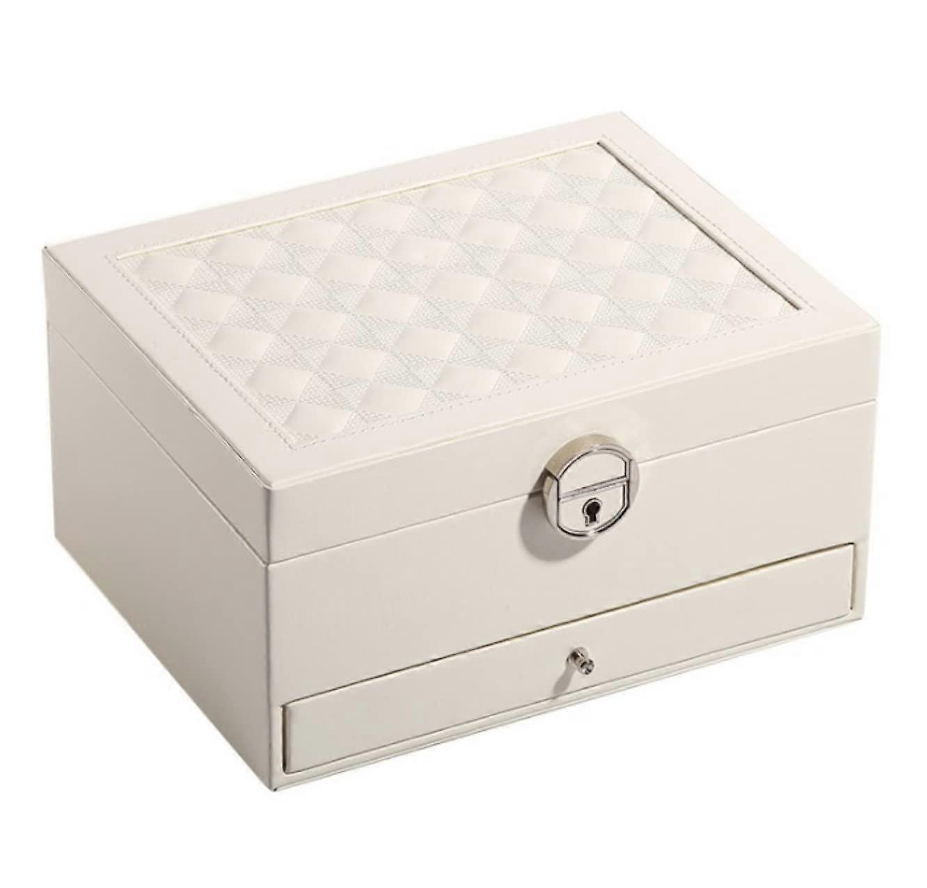 Earring Storage Box Jewellery Box Lockable with Mirrored Drawers (White, 22.5x18x11.8cm)