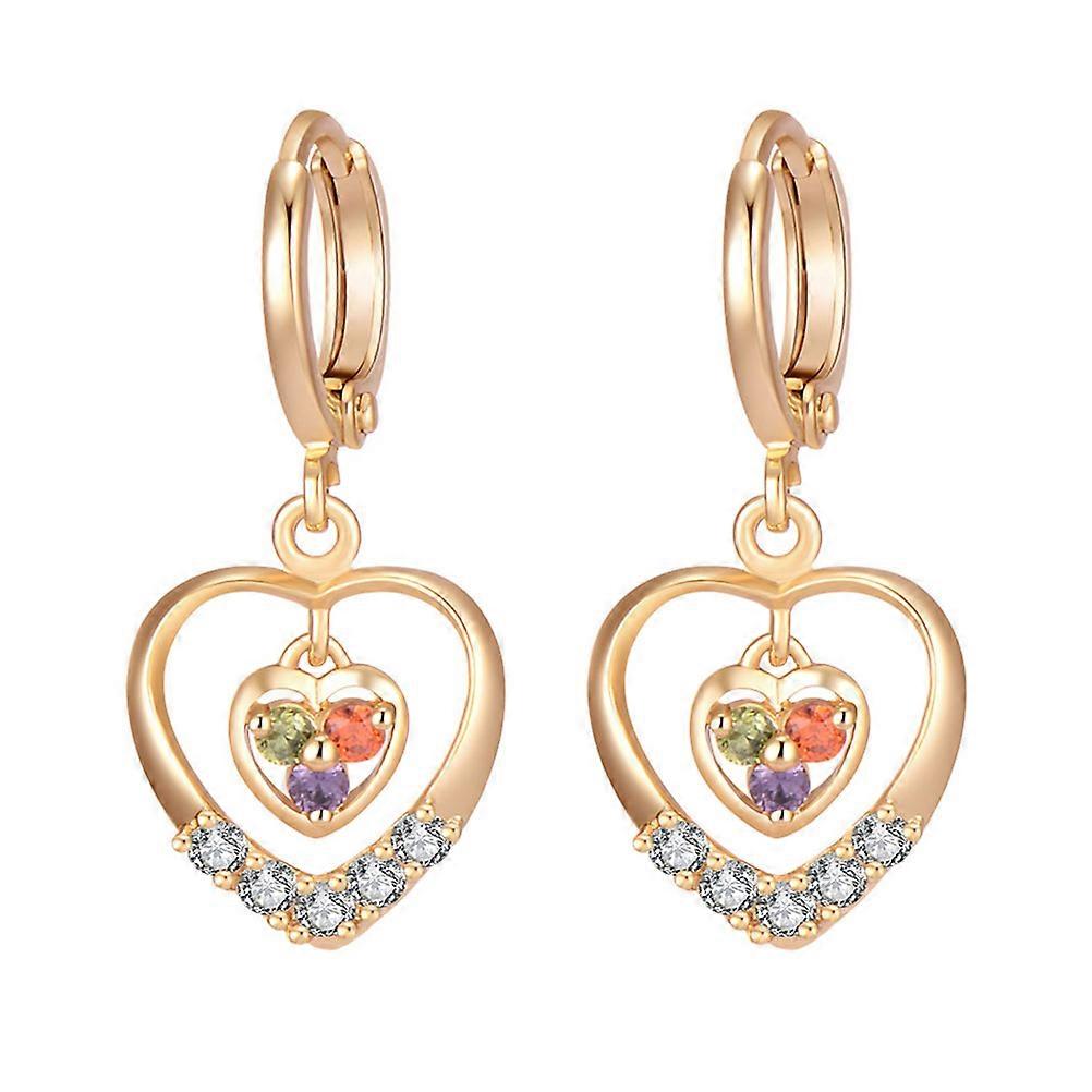Women Ear Rings 2Pairs Golden Zircon Earrings Hollow Heart Shape for Party