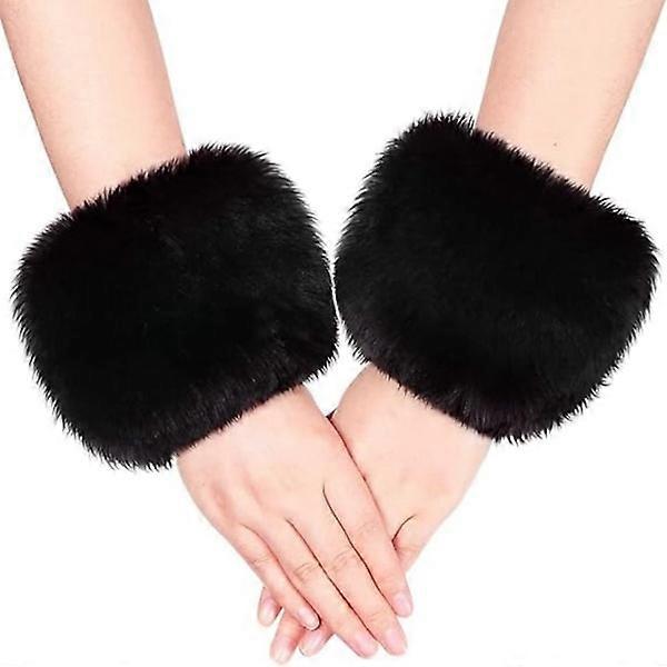 Fur Bracelet - Black Pair, Soft Faux Fur Bracelet, Women Winter Bracelet Sleeves