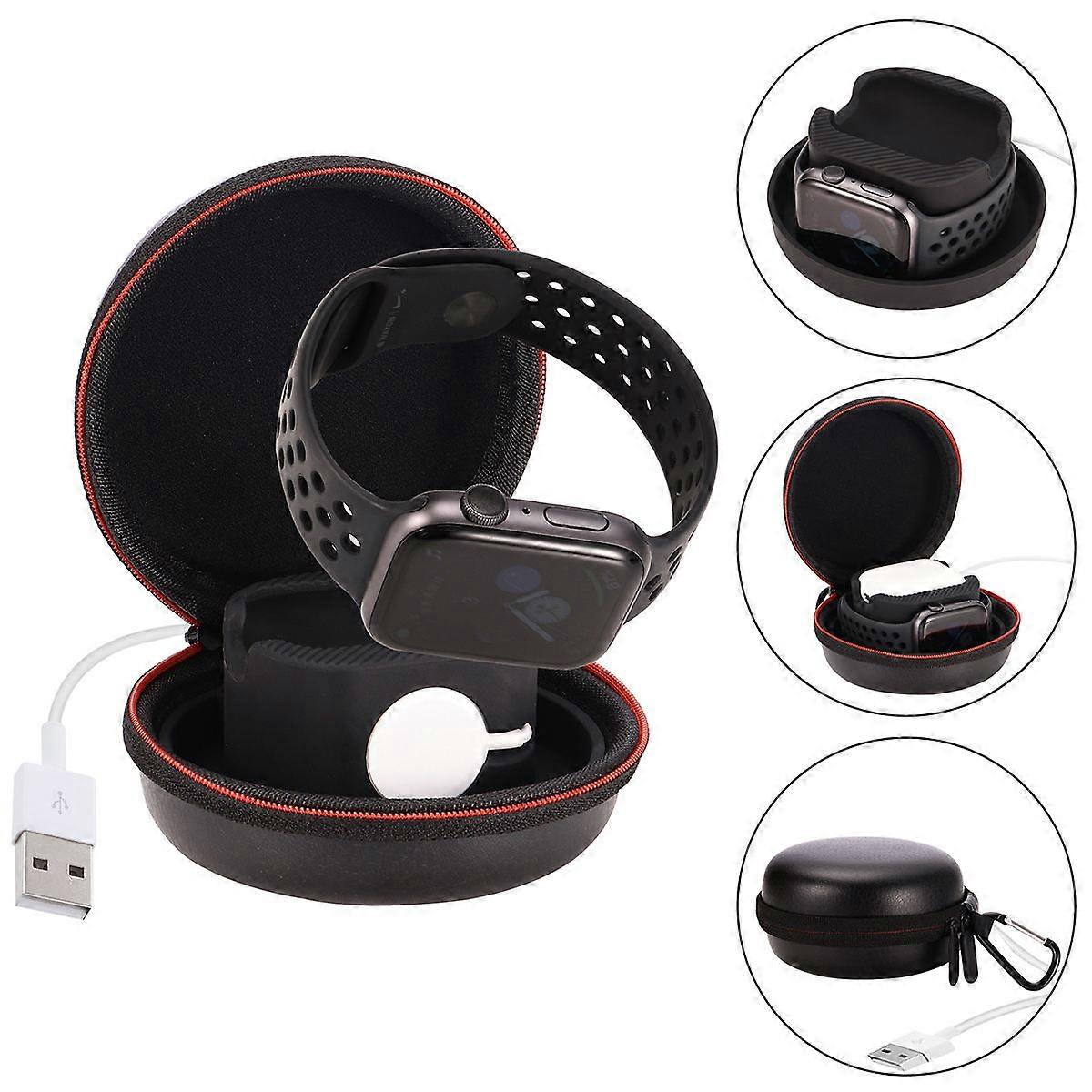 Soft rubber holder and durable zipper bag perfectly fit your watch charger and watch without scratching, shocking and collision on your travels.Removable cradle suitable for any rooms, nightstand, desk or counter top, keeps your watch clean and safe while charging, a great organizer for home storage. Features - Color: Black - Material: silicone - Size: 9.5x9.5x5.5cm - 2 in 1 Smart watch Charging dock and case. - Made of material for lasting use. - your watch water, and knock. - Comes with zipper design, easy to put in and take out your watch. - Built-In thread winder,provides a convenient and safe wire management programs. - NOTE: watch and magnetic charger cable are NOT included. Package list: 1 x Silicone Charger Stand