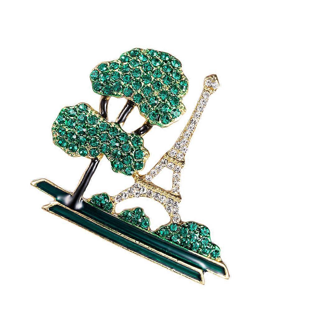 Chic Eiffel Tower Brooch Pin for Women Daily Wear Green 3.8X4.4cm 1Set