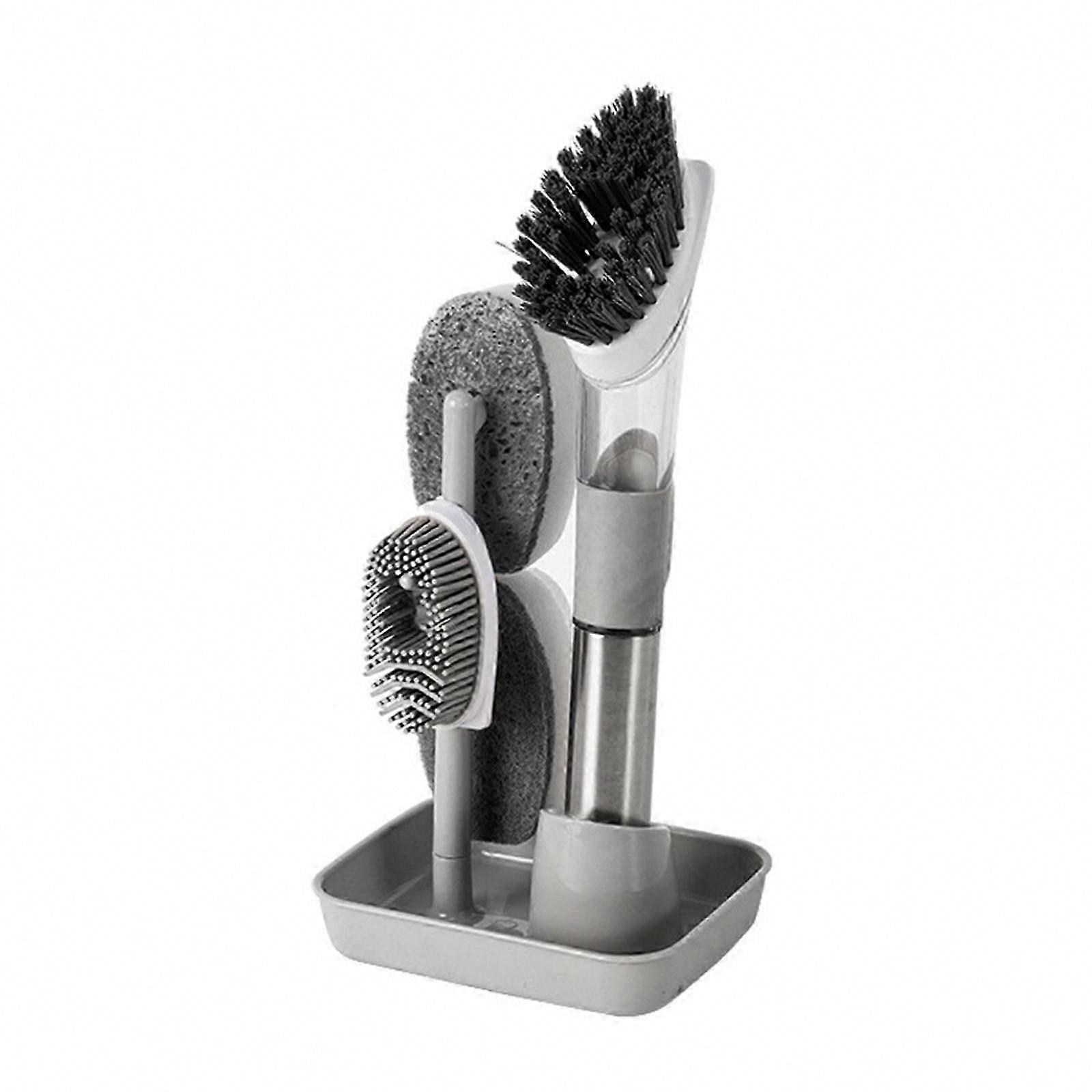 Soap Dispensing Dish Brush with 4 Replacement Heads 4 in 1 Long Handle Cleaner