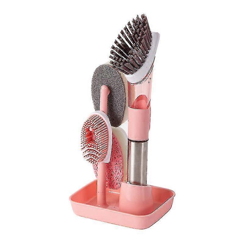 Dishwashing Brush Soap Dishwashing Brush Set Sink Cleaning Scrub Brush With 4 Replacement Heads And Storage Rack (pink)
