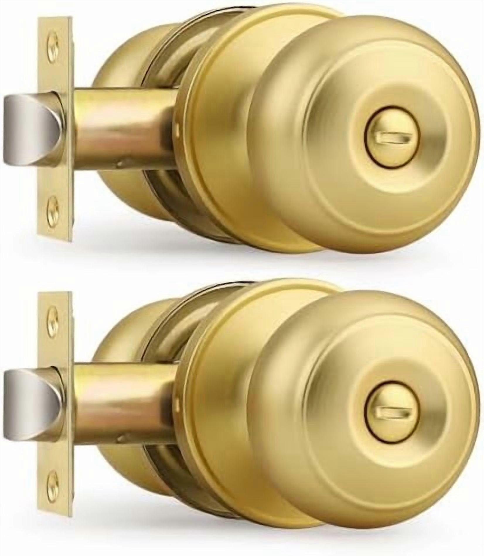 Brushed Brass Bed/Bath Knobs Keyless Privacy Interior Doors Locksets, Gold Door Knobs 2 Pack