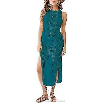 Crochet Cover Ups for Women Hollow Out Sleeveless Bikini Swimsuit Swimwear Side Split Long