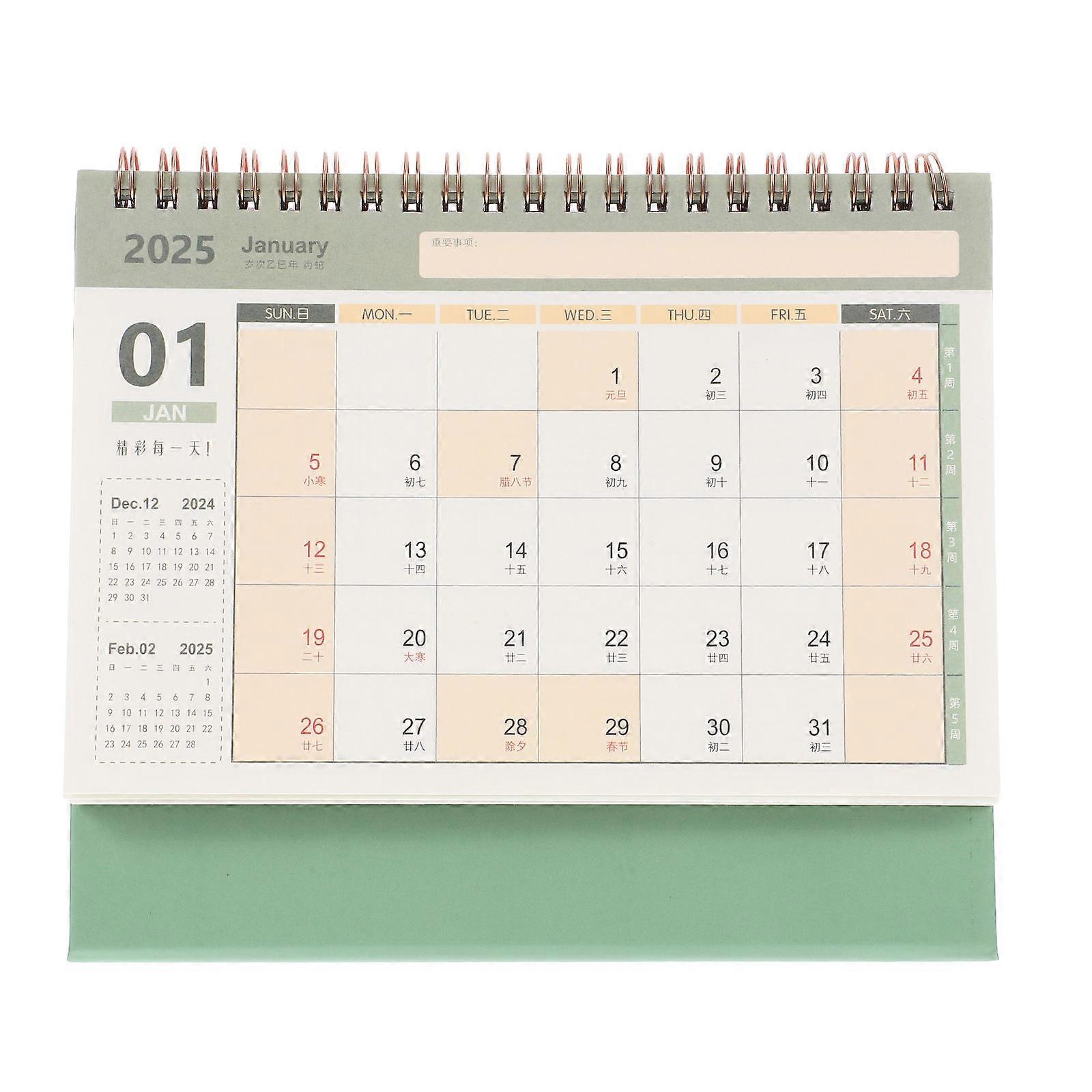 Monthly Planning Desk Calendar 2024-2025 For 19.00X16.20X8.50CM Green Modern Design 4Pcs