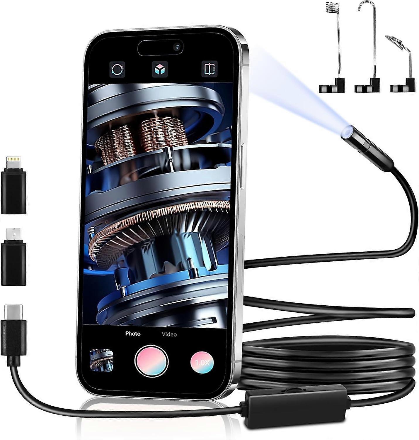Endoscope Camera with Light, 1920P HD Borescope with 8