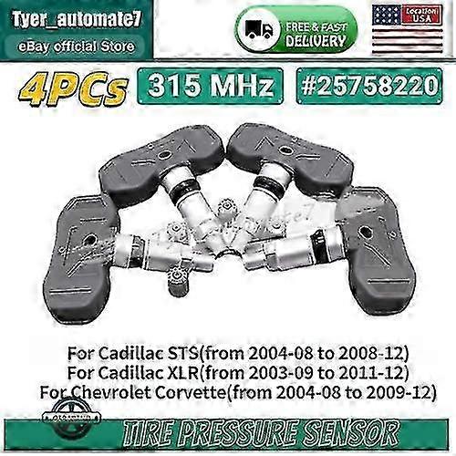 TPMS Sensor 25758220 4 Pieces for 2005-2009 Corvette C5 C6 7.0 Models