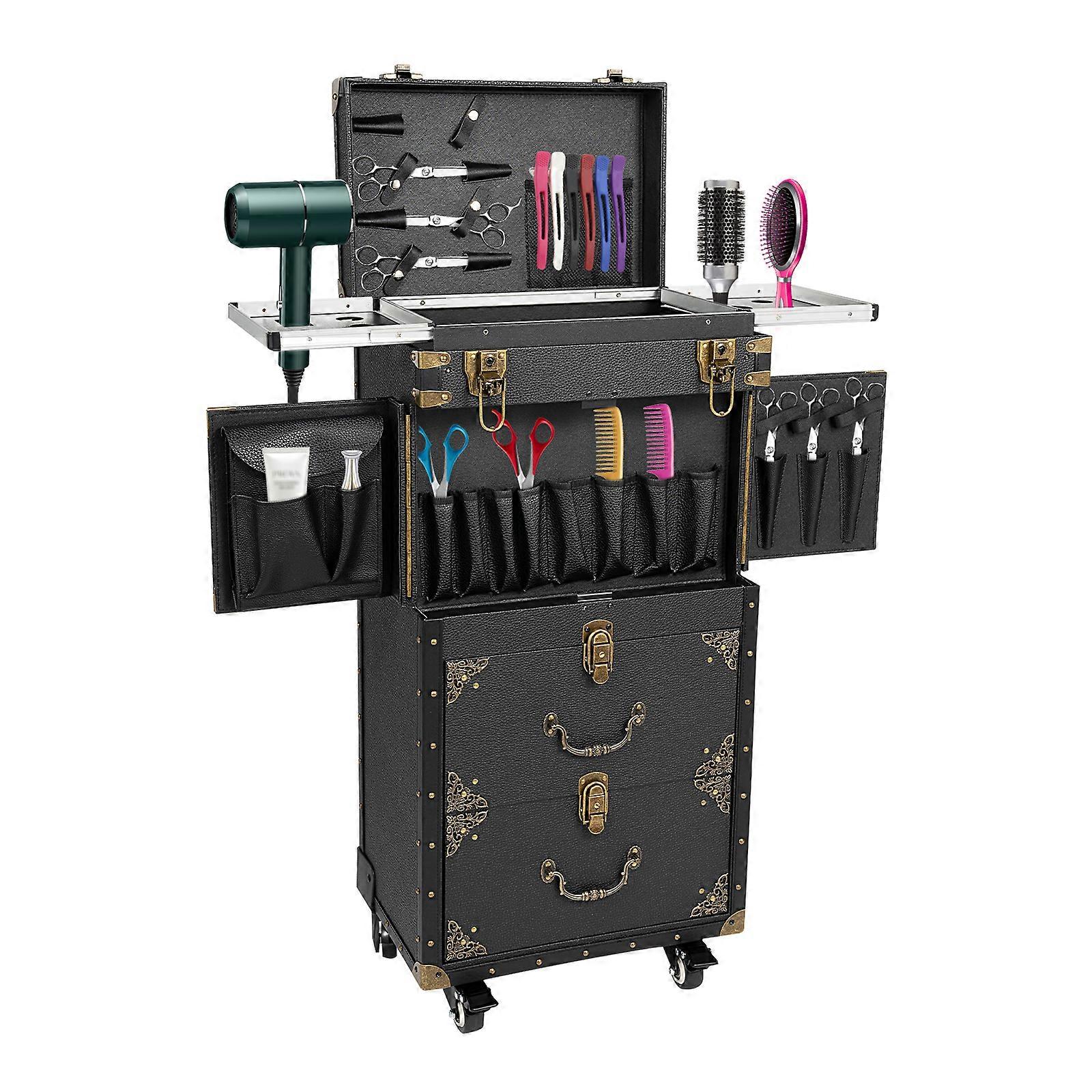 Easy to Move: This beauty salon luggage is equipped with universal wheels, a carrying handle and a drawbar. You can easily move it to the desired position, which is convenient for hair cutting, hair coloring, and working outside.