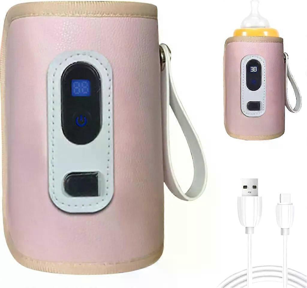 Portable USB Baby Bottle Warmer: 5 temperature settings, LCD screen, insulated cover, ideal for travel and car use to keep milk warm.
