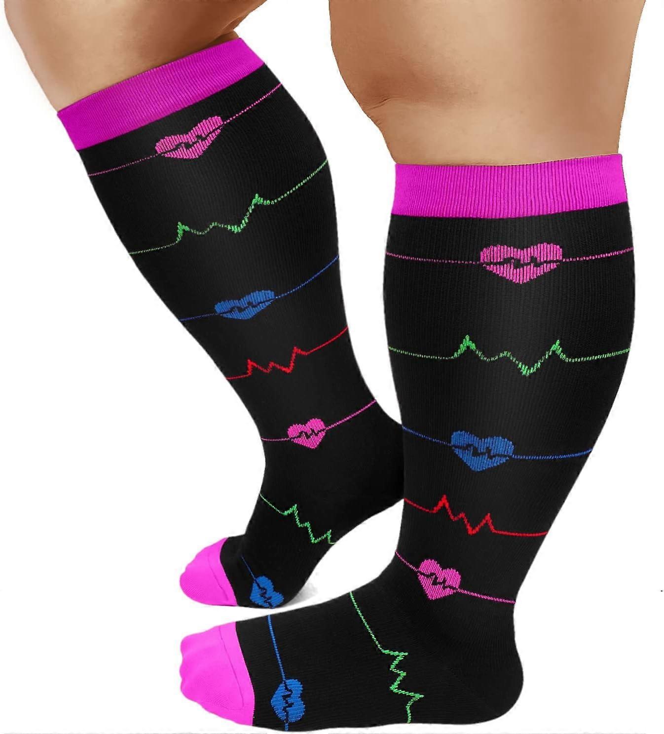 Plus Size Compression Socks for Women & Men, 20-30 mmhg Wide Calf Knee High Stockings for Circulation Support Recovery