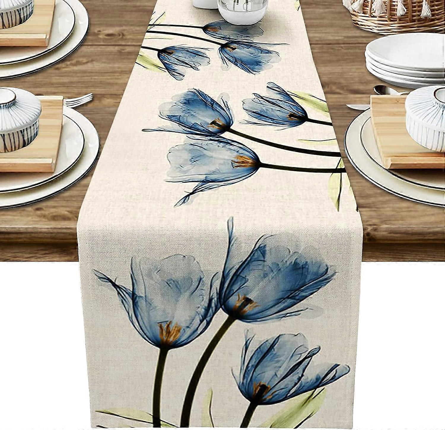 Table Runner 13 X 71 Inch Long,Blue Tulle Table Runner Printing Flower Table Runner Decoration