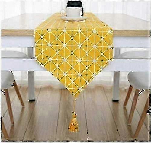 Handcrafted Cotton Table Runner 12x70 Inches Home Dining Decor Table Cover Yellow Fabric 26s