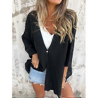 One Button Spring Solid Color Casual V-Neck Loose Cardigan Shirt