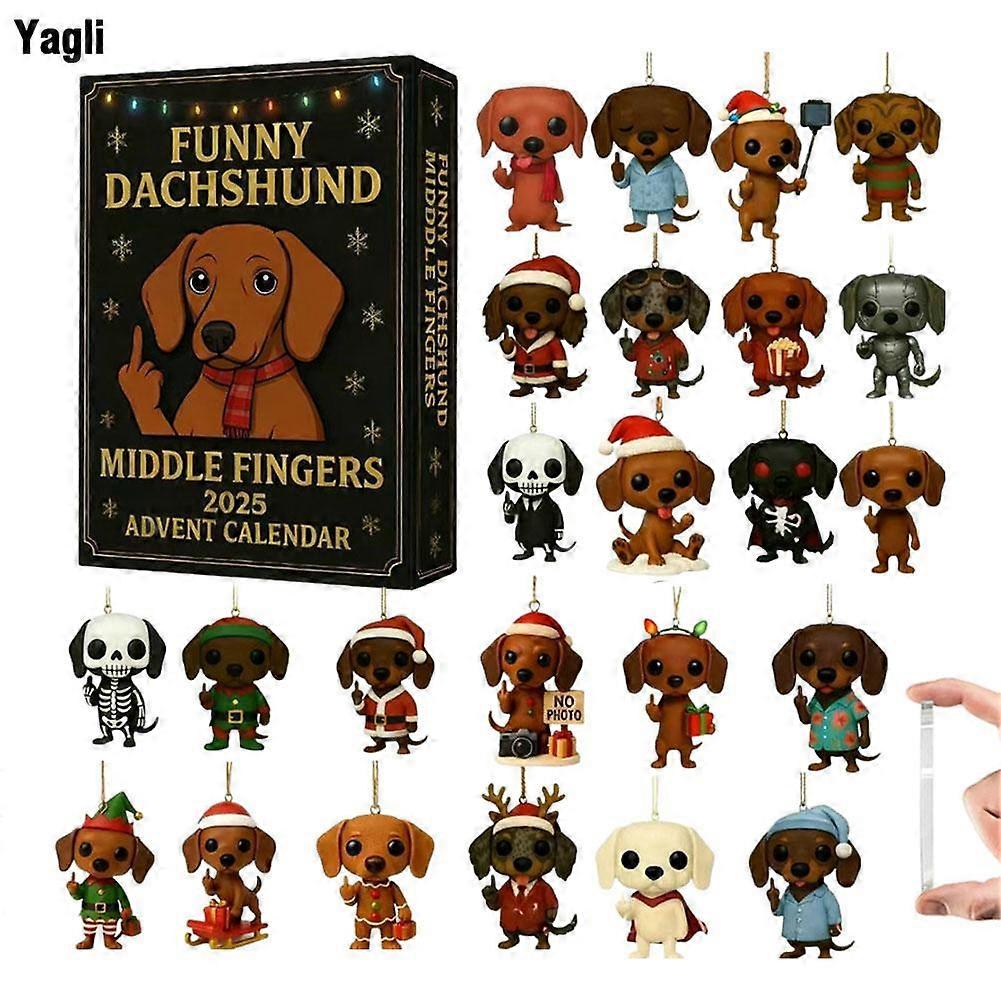 Christmas Advent Calendar Cute Dachshund Pendant 24-day Countdown-A