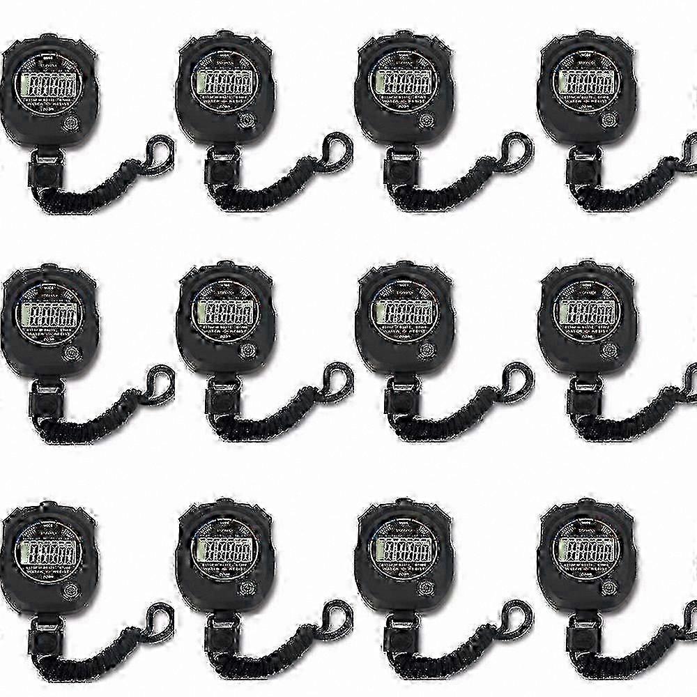Digital Sport Stopwatch Timer 12-Pack, Multi-Function with Large Display, Date, Time, and Alarm Feature