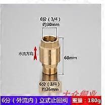 Description This brass one-way check valve is designed to prevent backflow and ensure smooth water flow in your plumbing system. Featuring both female and male threads, it offers versatile installation options. The durable brass construction ensures longevity and reliability, making it ideal for various applications such as irrigation, water heaters, and garden spigots. Features -Color:Golden -Material:Brass -Size:6.00X3.40X3.40cm/2.36X1.34X1.34in -Thread:3/4" - Brass material: crafted from brass, this check valve ensures durability and resistance to corrosion, providing longlasting performance in various water systems -Standard size: designed with a thread, this valve fits seamlessly into most household and industrial plumbing setups for installation -Effective backflow prevention: the oneway check mechanism prevents liquid backflow, safeguarding pumps and water equipment from potential damage and ensuring system reliability -Versatile application: ideal for water , irrigation, heating systems, and more, this valve enhances efficiency and functionality diverse scenarios -Reliable seal design: engineered for consistent sealing performance, this valve minimizes maintenance needs and ensures safe and uninterrupted water flow over timePackage list: 1 x brass check valve