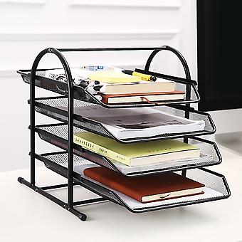 Black Desk File Organizer: 4 Compartment Metal Mesh for Simple Desktop Assembly