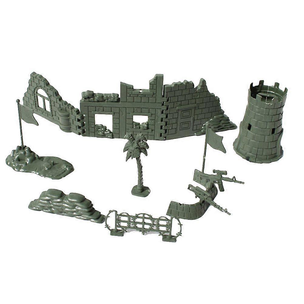Military Fence Model Toys Set DIY Assembly Sandbag Perimeter Fence Ruins Sand Table Model (Army Green)