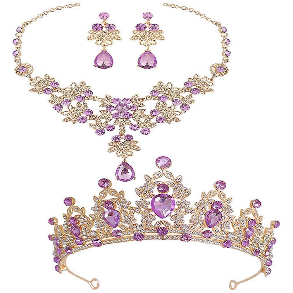 Purple Bridal Necklace and Earrings Set for Wedding 4Sets Tiara and Crown