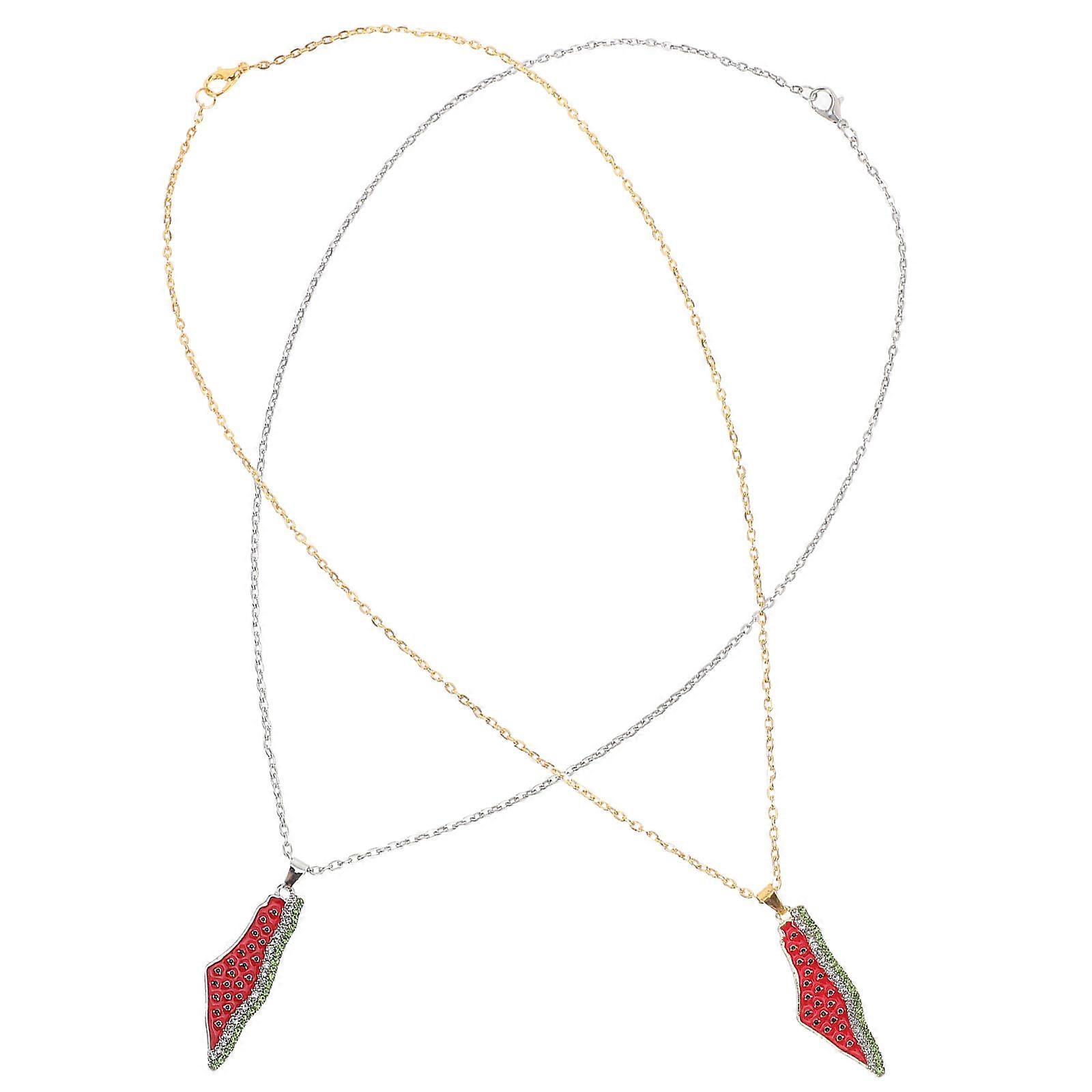 Beaded Necklace Watermelon Pendant Necklace Casual Wear Unisex Stainless Steel 2Pcs