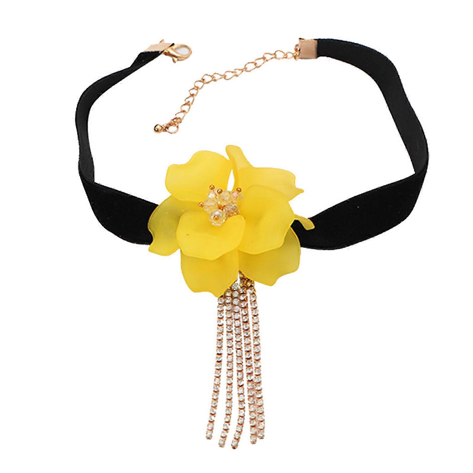 Rose Flower Necklace with Tassels Pendant Charm, Fashionable Clavicular Chain Accessory Jewelry for Wedding and Parties Yellow