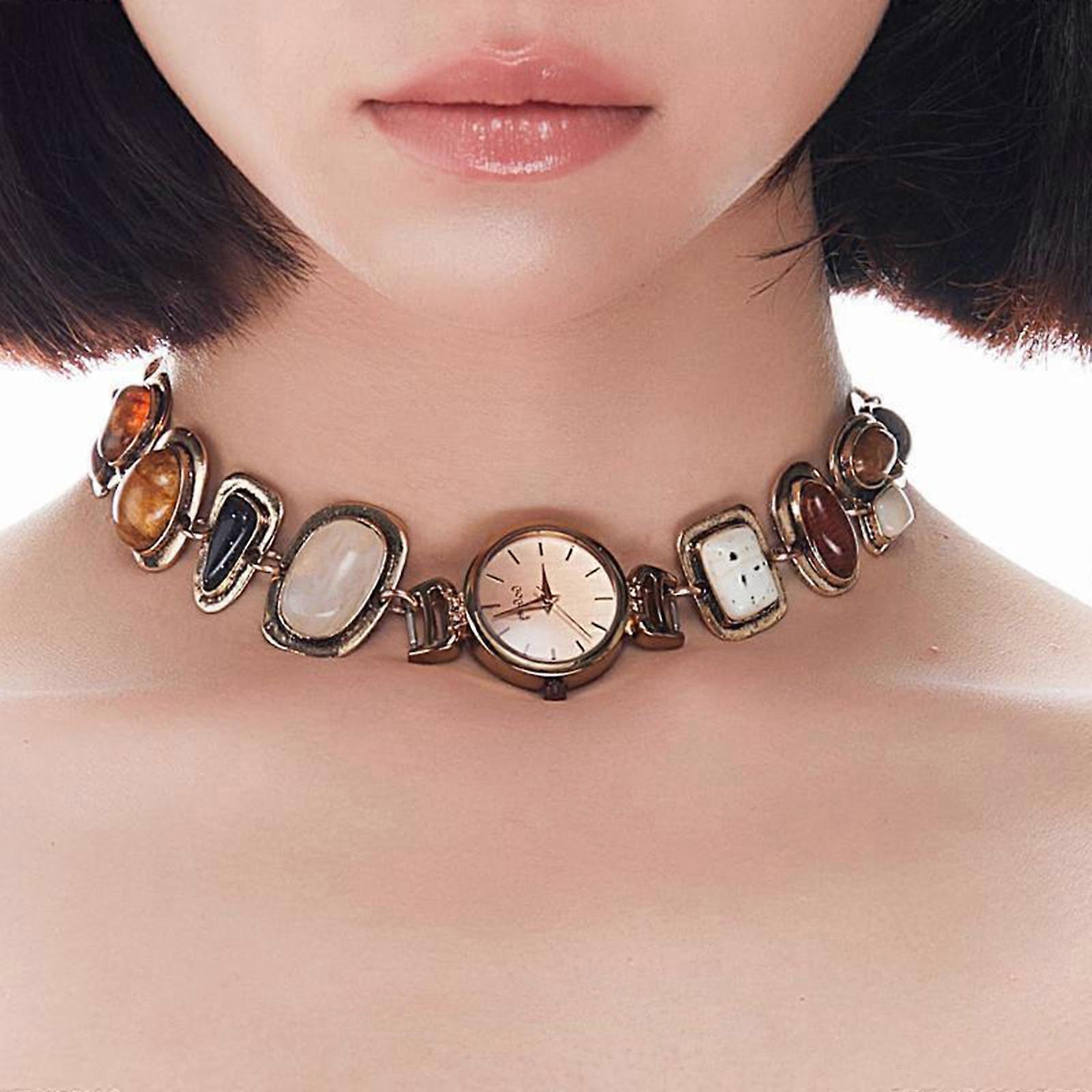 Sophisticated Clock Pendant Necklace with Colorful Gemstones Unique Fashion Jewelry for a Distinctive Fashion Statement