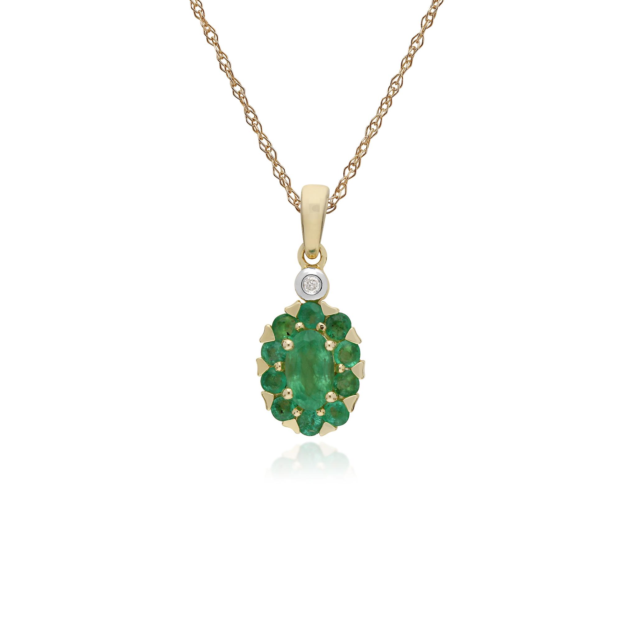 Cluster Round Emerald & Diamond Oval Pendant Necklace in 9ct Yellow Gold 135P1912039