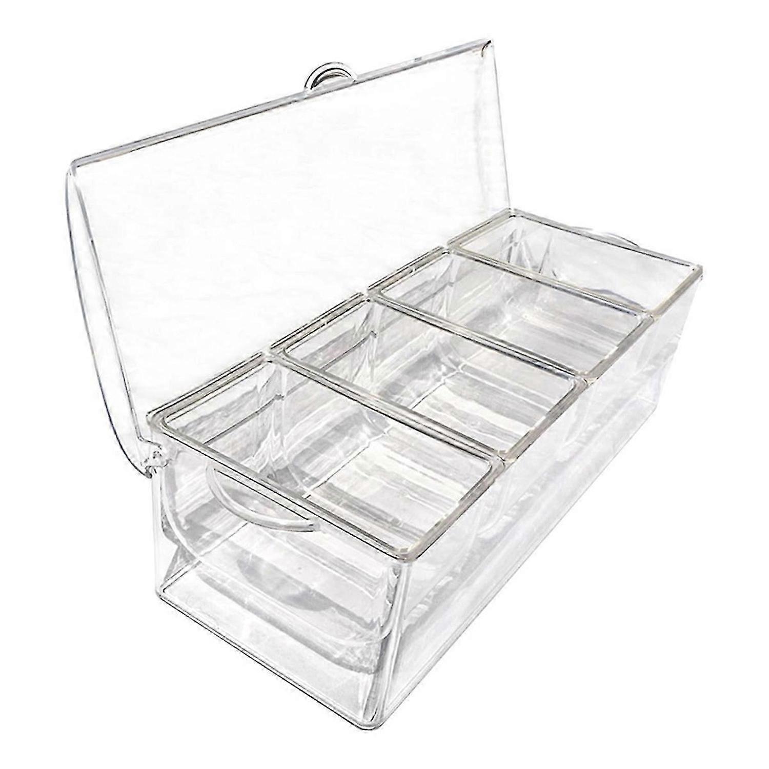 Ice Chilled Condiment with 4 Containers, Condiment Server with Separate Lids, Serving Tray Platter