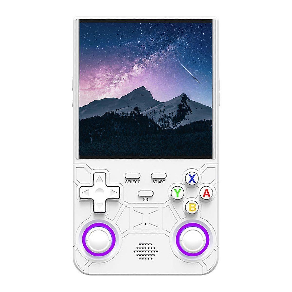 Newly upgraded handheld game console Dual joystick design, supporting dozens of mainstream simulators and tens of thousands of games to play3D 7 Colorful Double Joystick Mechanical buttons, comfortable 3D joystick pressing sensation triggerDouble layer button Swap the joystick and key Smooth operation to create a deadly skillUpgrade L/R button Back spring four plate L/R key Combining exquisite curvature and grip craftsmanship designThe spring trigger button Ergonomic design for a more comfortable grip Experience, stronger sense of operationModel: R36 UltraCPU: RK3326 -A35 CPU,1.5GHZGPU: Mali-G31MP2 ,support OpenGL ES3.2RAM: LPDDR3 1GBROM: EMMC 8GBSystem: EmuelecScreen: 4.0 IPS Screen ,Resolution: 720 x 720Lithium battery: 3000mahBuilt in games: 128GB (with)Built in 20+ emulators for PS1,for CPS1,for CPS2,for CPS3,for SFC,for FC,for N64,for ,for GB,for ,for ,for ,for DC,for ,for NGP....more Built in WIFI ,support online battle(The product printed words depending on the batch, but this does not affect use)Color: A:WhiteMaterial: ABSPackage Contents:1 x Handheld Game ConsoleOnly the above package content, other products are not included.Note: Light reflection and different displays may cause the color of the item in the picture a little different from the real thing. The measurement allowed error is +/- 1-3cm.