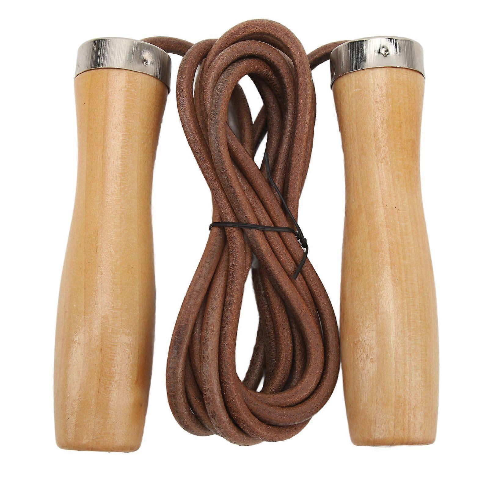 Jump Rope Cowhide Wooden Handle Portable Highly Effective Skipping Rope for Fitness Exercise