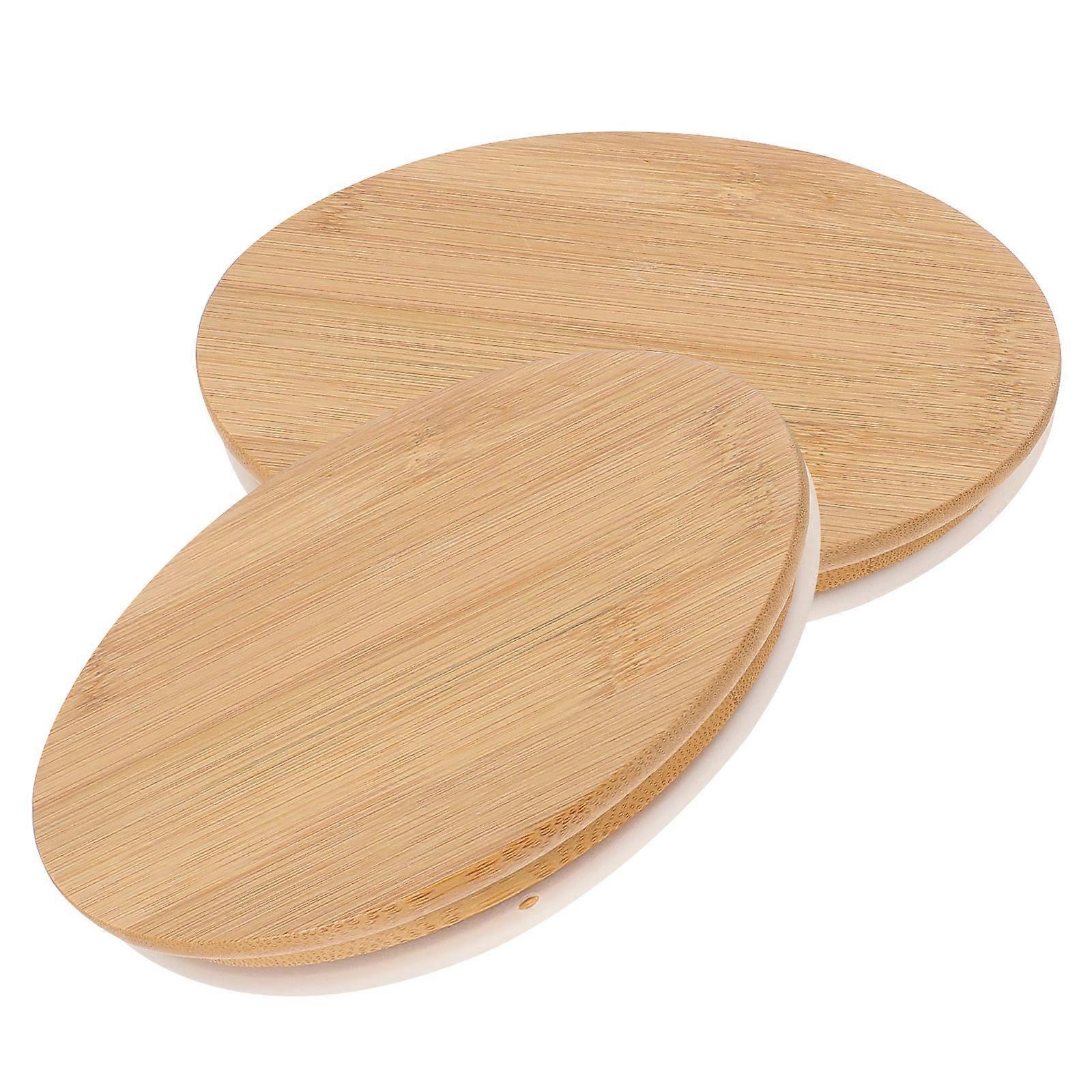 Reusable Bamboo Sealing Lids for Kitchen Use with Silicone Ring, and LeakProof, 2pcs Light Brown