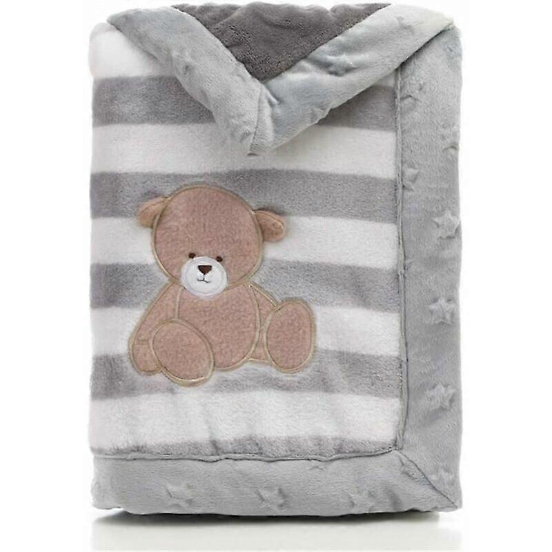 Double Layer Baby Blanket, Soft Flannel Baby Blanket, Warm Stripes, Cozy Stroller Blanket (Grey Bear)