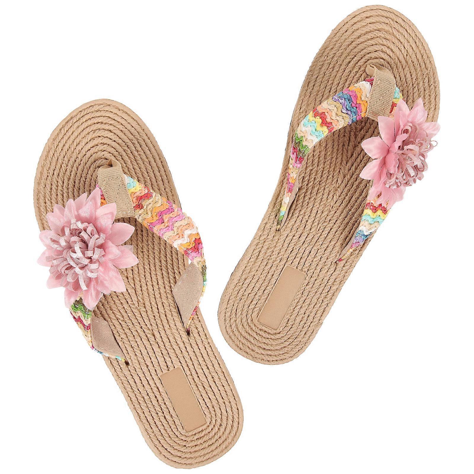 Creative Flower Beach Slippers 5 Pairs for Women in Light Brown with Flat Sole for Comfortable Long-Term Use and Enhanced Walking Experience