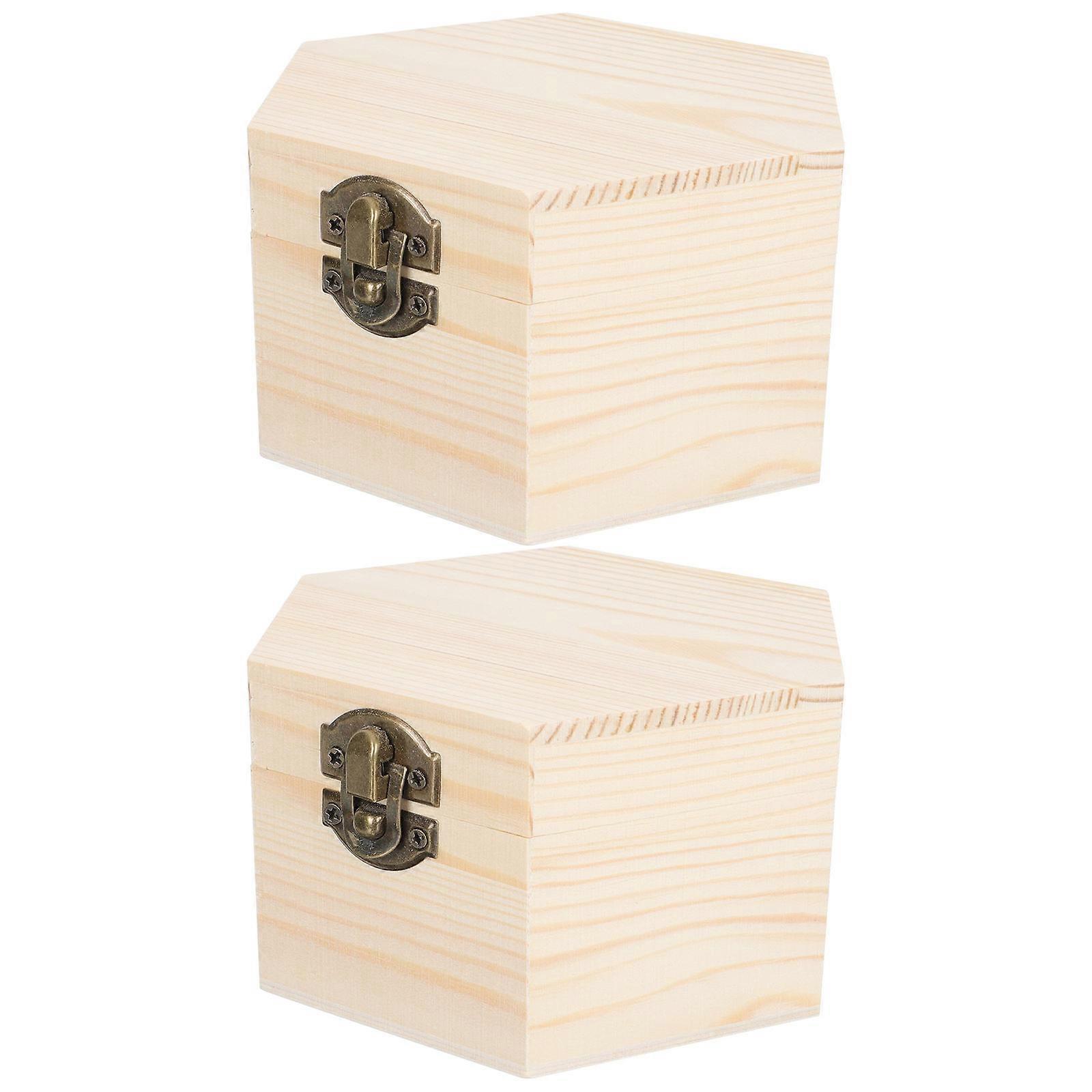 Creative Wooden Gift Boxes for Storage Use Versatile Hexagonal Shaped Boxes Assorted Color 2pcs