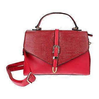 Crocodile-effect handbag with gold buckle