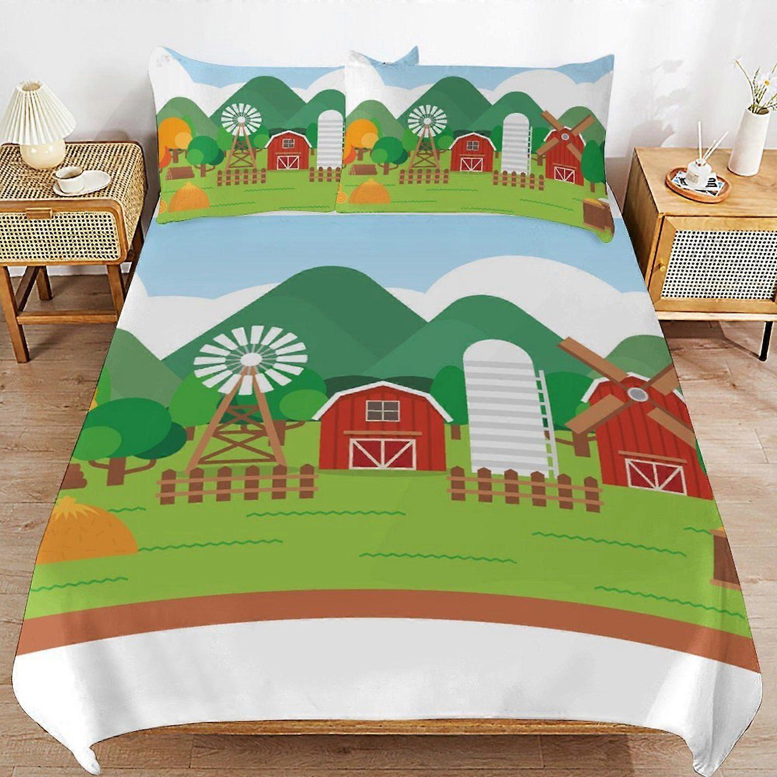 d377 Happy Farm Long Thread Comfort Soft Zipper Closure Functional Fit Bedding Duvet Cover Sets for Restful Sleep b377