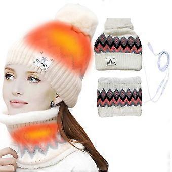 Bonnet chauffant USB et cache-cou Doux respirant en peluche épais bonnet de ski ensemble pour femmes pour courir le ski