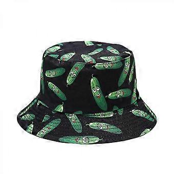 Wekity Mignon Seau Chapeau De Pêcheur plage Chapeaux pour femmes, Réversible Double-side-wear Unisexe (concombre-noir)