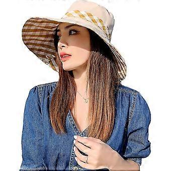 Chapeaux de seau élégants pour les femmes Casquettes de soleil d’été Chapeau de plage Chapeau à carreaux pliable réversible