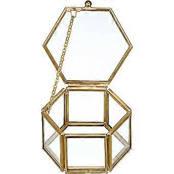 Boîte à bijoux en métal et en verre Boîte à bijoux hexagonale Boîte à bijoux pour femmes Fiançailles de mariage Saint-Valentin (doré, petit)
