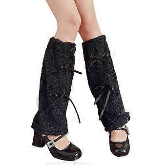 1 Paire Femmes Jambières Ruban Arc Couleur Unie Extensible Botte Décoration Chaussettes Automne Hiver Long