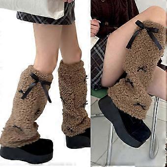 Guêtres en fausse fourrure, chaudes, douces et moelleuses, couvre-bottes pour femmes, idéales pour les fêtes et les déguisements. Couleur marron. unbrand