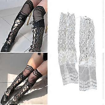 Chaussettes hautes en dentelle résille pour femmes, style Sweet Lolita, lacets, manchettes de bottes d'été blanches unbrand